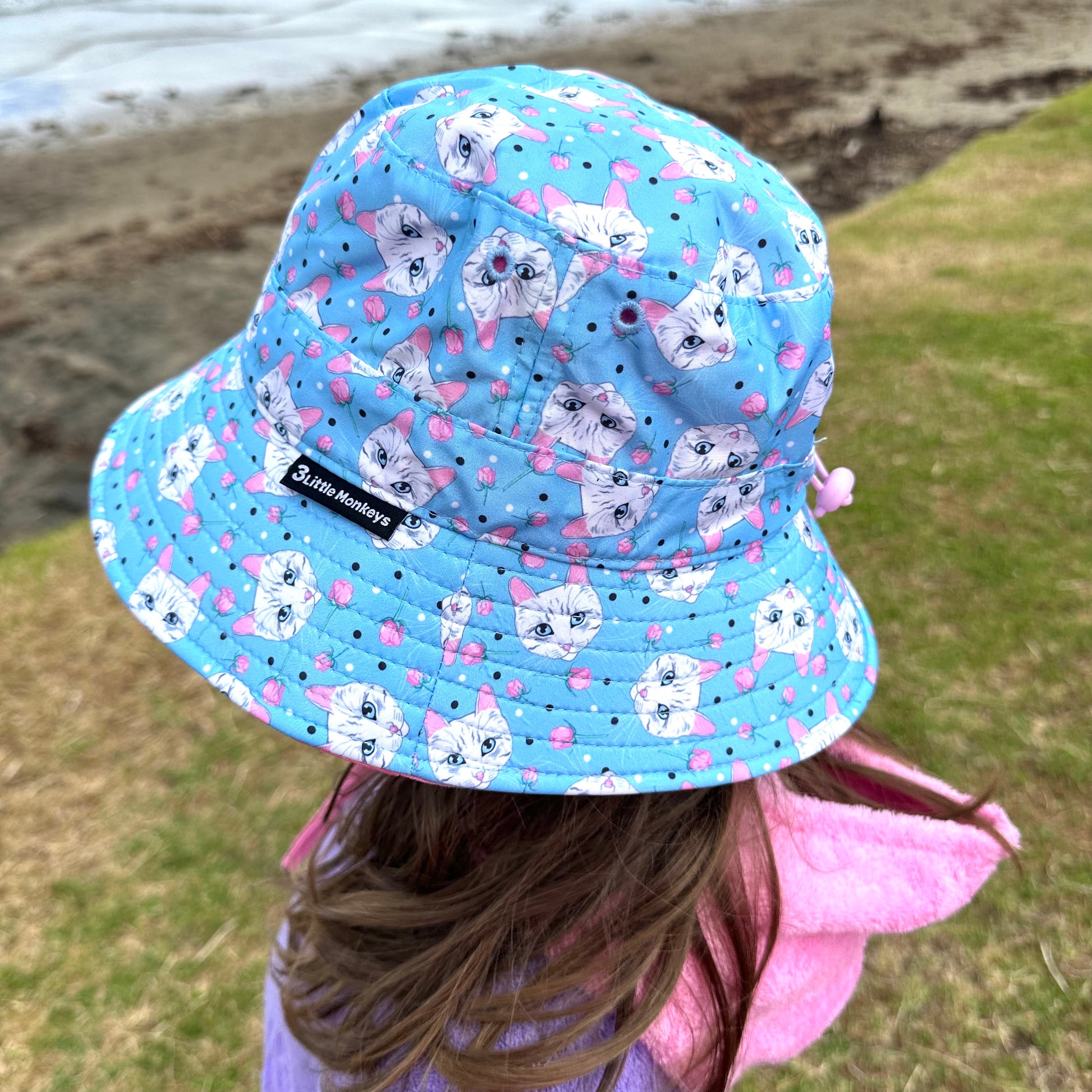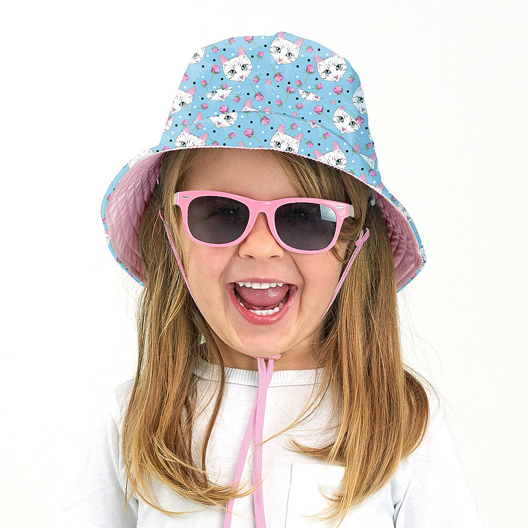宽边夏季渔夫帽 - 玫瑰与猫